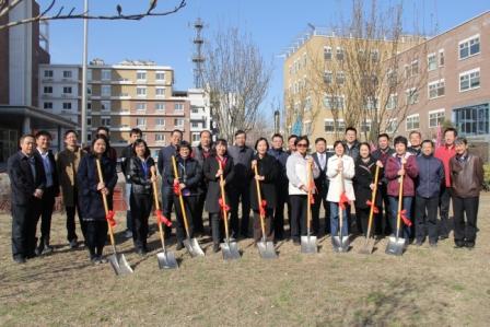 公司領(lǐng)導(dǎo)和員工代表共同栽種同心樹苗